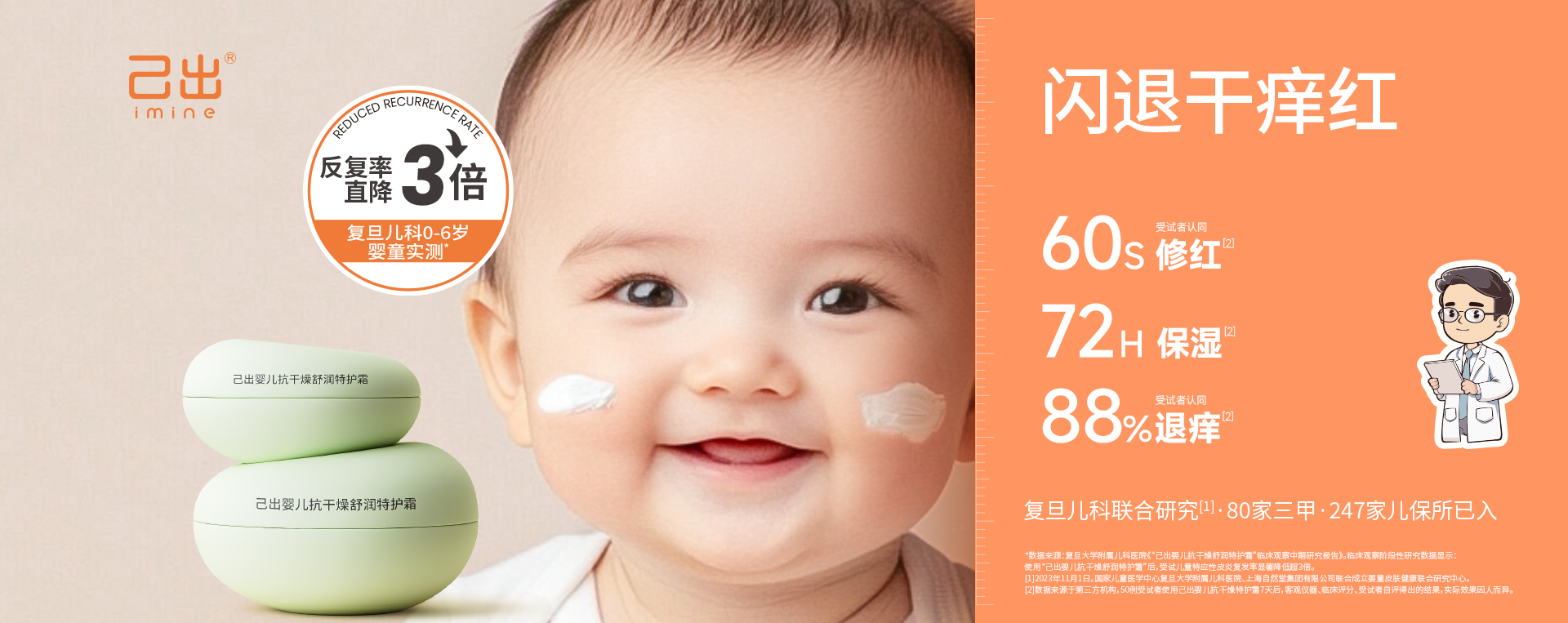 己出,由6位配方师父母,以自己孩子使用为标准研发。历时6年,经过800多人次人体功效观察,并携手国家儿童医学中心复旦儿科医院联合研制,创造出新一代天然、安全、有效的婴童护肤产品, 让医研共创的成果惠及万千孩子。